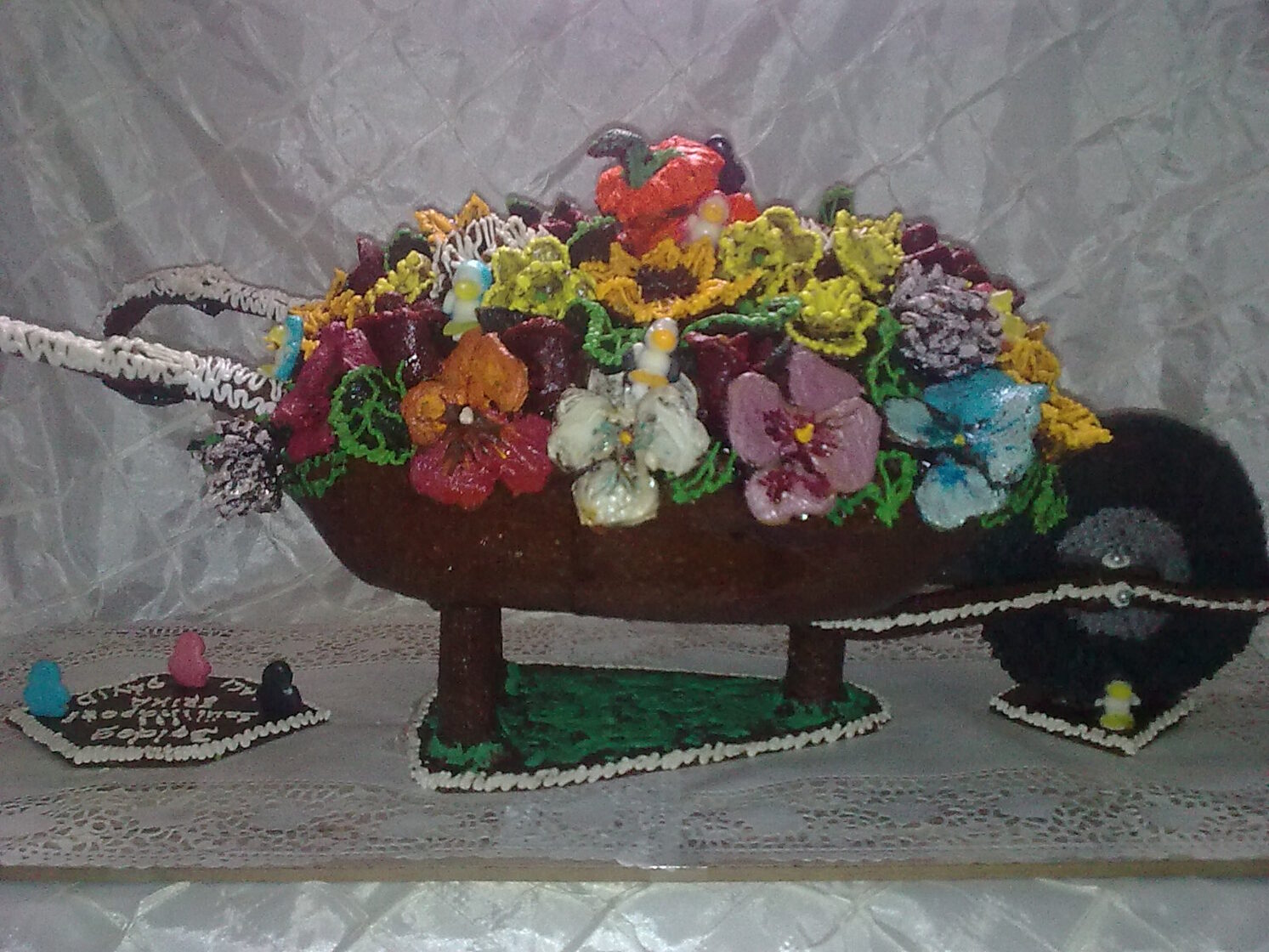 91.000 Ft 6,5 kg grillázs talicska virágokkal -