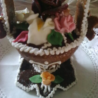 21.000 Ft grillázs kosár virágokkal, fogantyú közepén lepkével 1,5 kg -